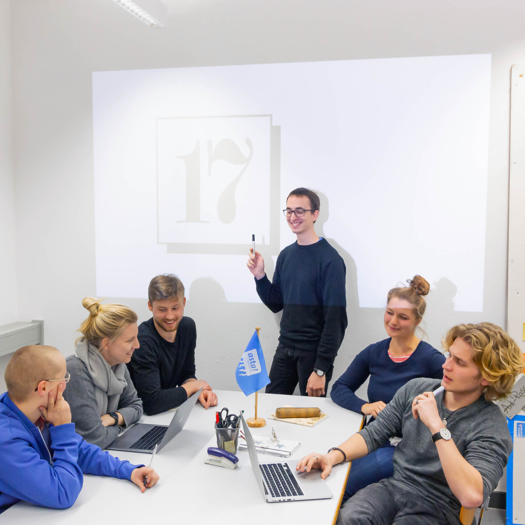 - 6. Habt ihr einen Langzeitplan? Soll es, das Haus 17, zum Selbstläufer werden? Wird es durch den AStA gepflegt, soll es einen eigenen Beauftragten geben, der sich um alle Angelegenheiten, wenn es denn sowas gibt, kümmert? Oder soll das einfach von alleine laufen, dass die StuRen jetzt ihre Social-Media-Accounts befüllen?