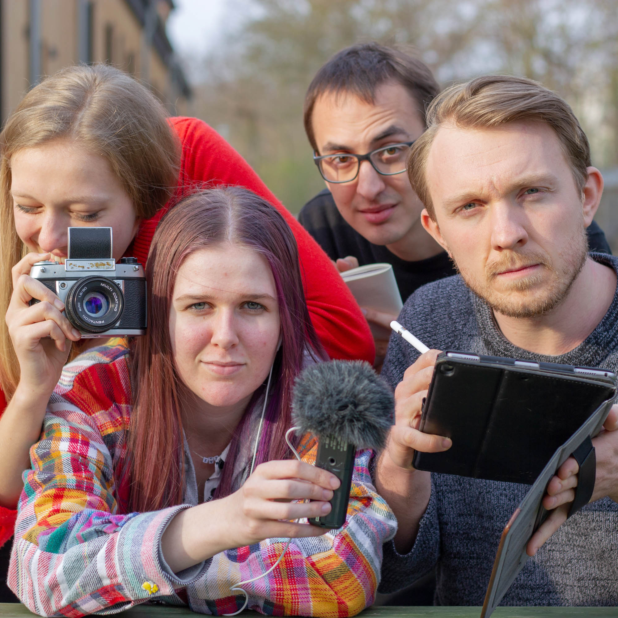 Mandy Puchert ist in ihrem Masterstudium Design und gleichzeitig angestellt bei der Hochschulkommunikation, dort für das Corporate Design der FH zuständig. Niko Ripka studiert Interfacedesign und ist in seinem 8. Semester, seit seinem 2. Semester im AStA, im Referat Öffentlichkeitsarbeit.