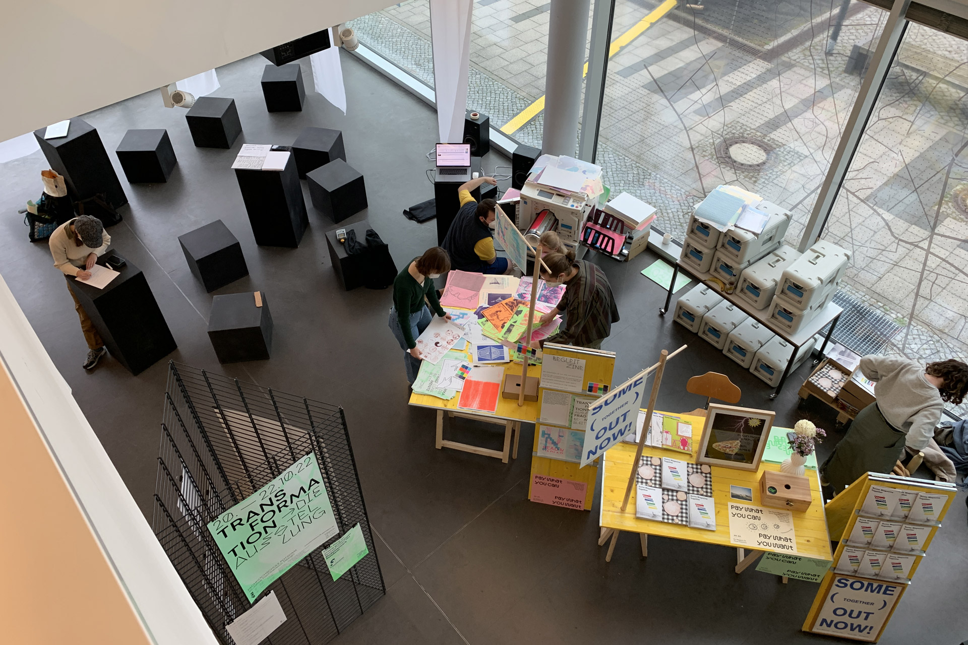 „Transformation gestalten. Gestaltung transformieren“ war der Titel der Ausstellung, die vom 20. bis 22. Oktober 2022 studentische Arbeiten des Fachbereichs Design zeigte. Sie war die elegantere, kuratierte Schwester des „Design-Rundgangs“ vom Sommersemester 2022 und die spirituelle Nachfolge der „Werkschau“. In nur zwei Etagen im Haus D wurden die Ergebnisse von 26 ausgewählten Kursen präsentiert; dabei ging es um Themen wie Natur, Licht und Utopien im Design.