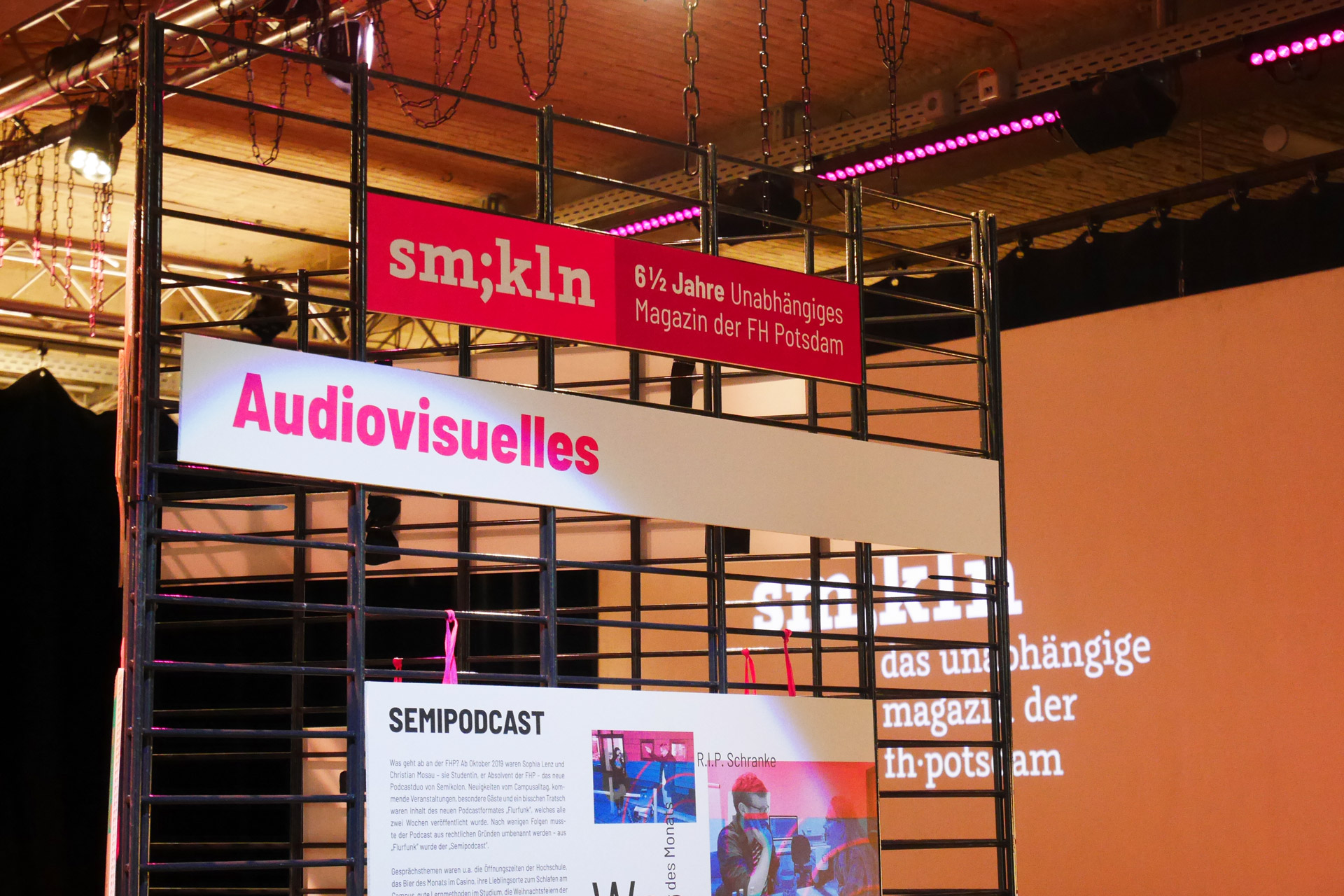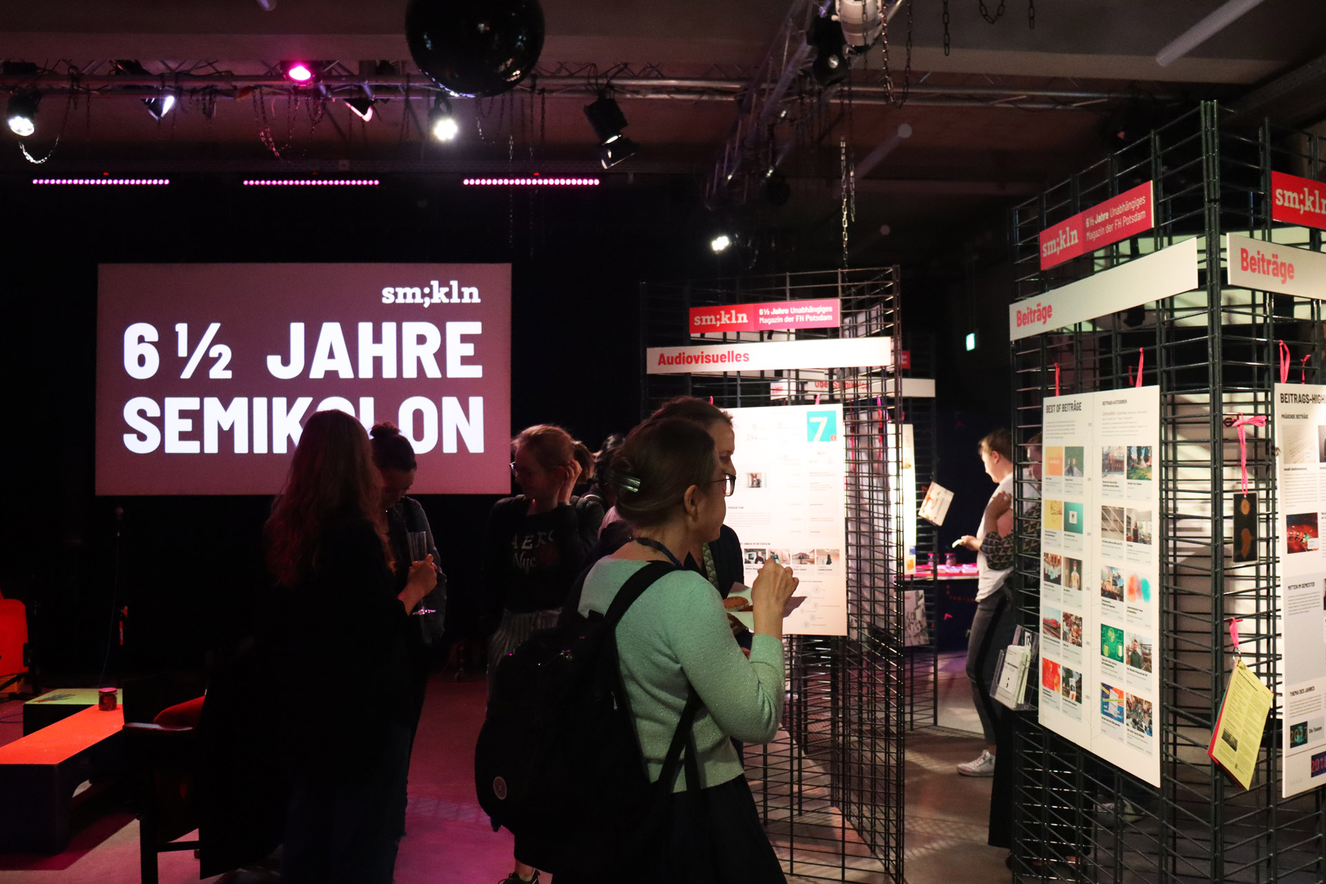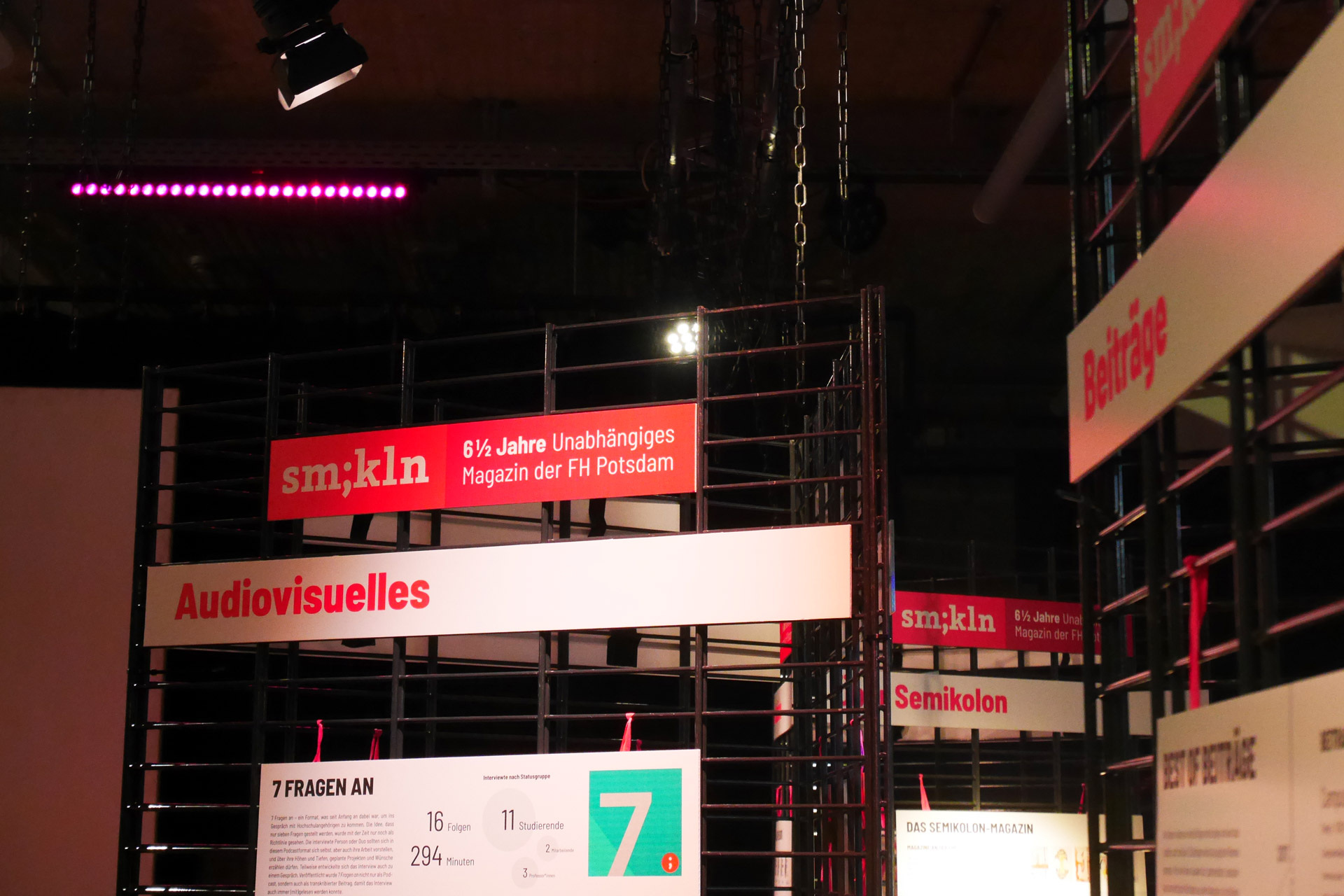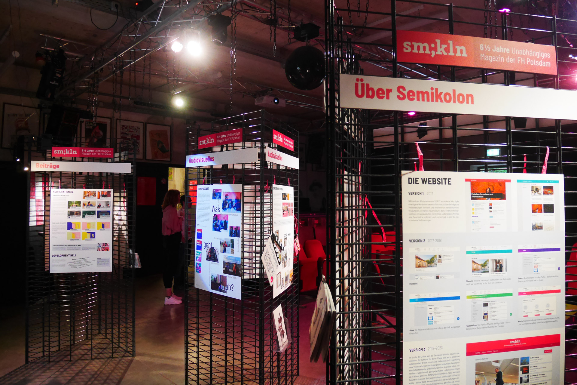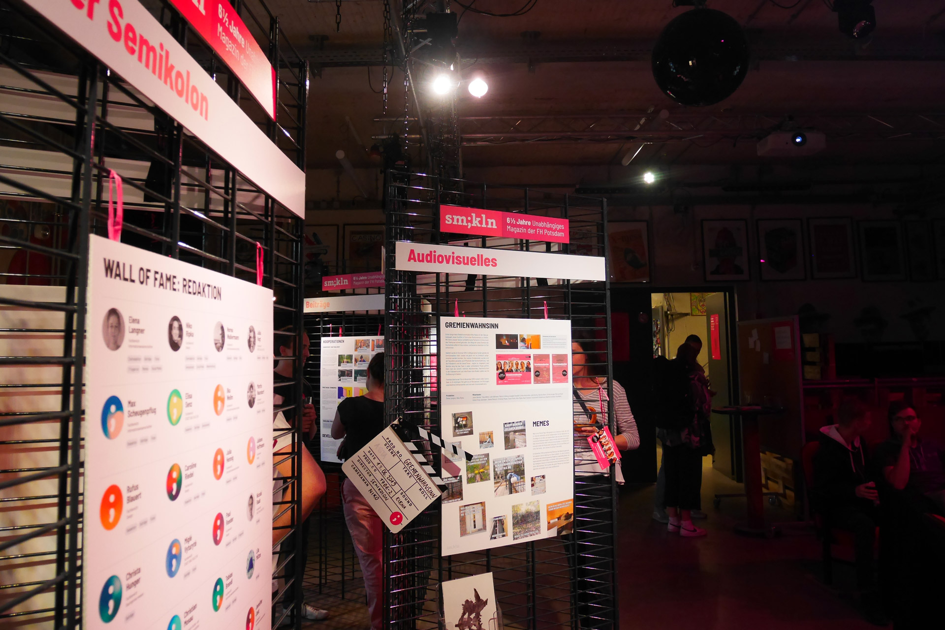 Bei der Abschieds-Planung stand eines von Anfang an fest: wir wollten eine Ausstellung über die sechseinhalb Jahre Semikolon realisieren. Unser Konzept: Drei Ausstellungssäulen zu drei Themen mit je drei Plakaten.